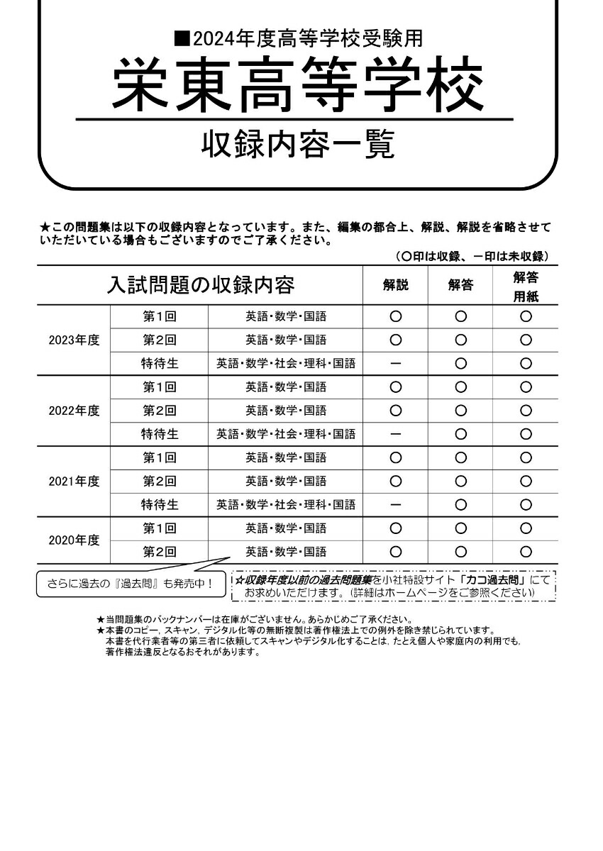 楽天ブックス 栄東高等学校(2024年度用) 4年間スーパー過去問 9784799672235 本